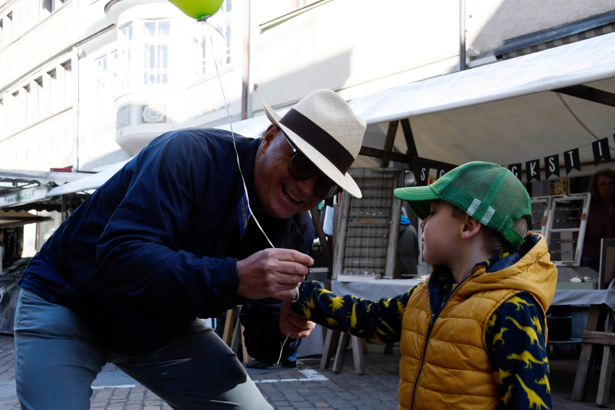 Besonders die Kinder hatten Freude. Sie durften sich einen bunten Luftballon ans Handgelenk binden lassen. Andere Buben und Mädchen drehten das Glücksrad und hatten so die Chance, sich ein Armband oder eine Halskette aussuchen zu dürfen.