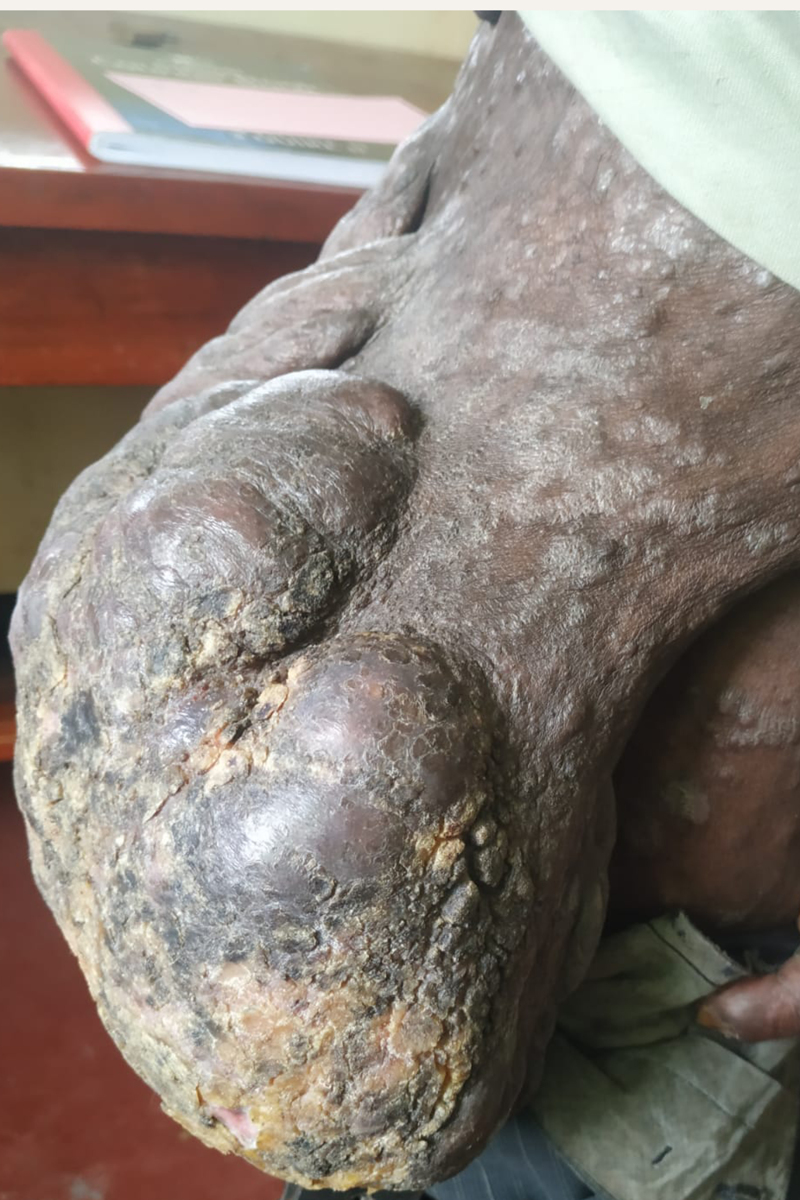 Anfang Dezember kam ein Patient in die Sprechstunde, der unter einer starken Hautveränderung leidet. Violet Maghanga untersuchte ihn und vermutet, dass es sich um Hautkrebs handelt.