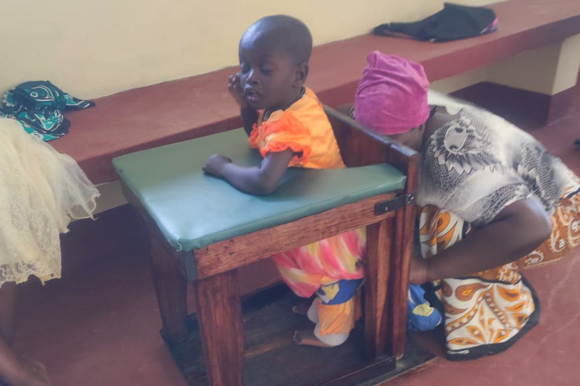 The new therapy rooms at the day clinic may not yet be open, but a new aid is improving therapy for children with cerebral palsy. Another therapy day for children with cerebral palsy took place today, Wednesday. “We were able to get new standing aids,” writes our clinic manager Violet Maghanga. She also sends along some pictures. They show the happiness the children feel because they can finally look out into the world upright.