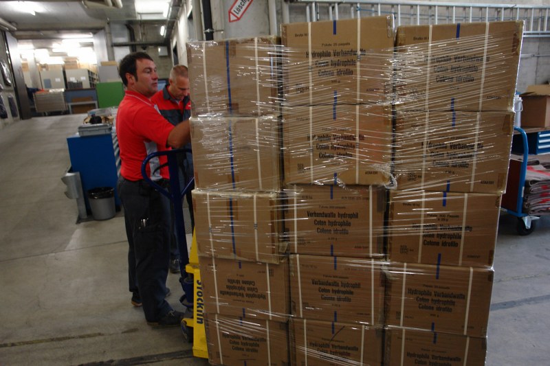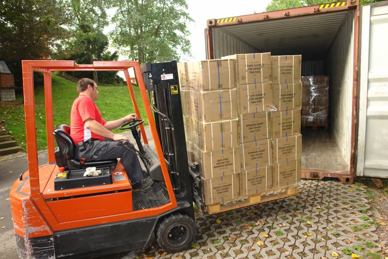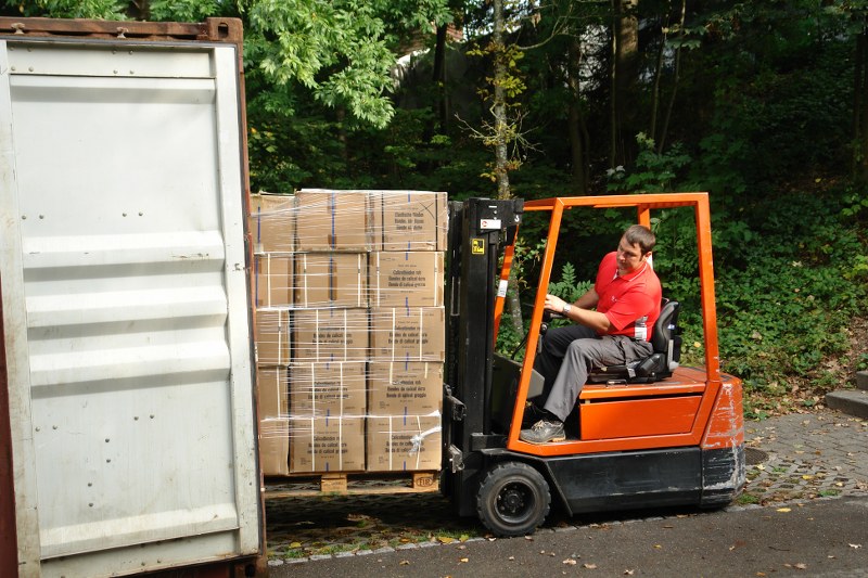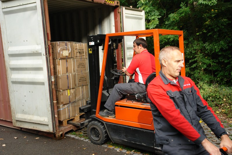 Civil defense St.Gallen loads relief container