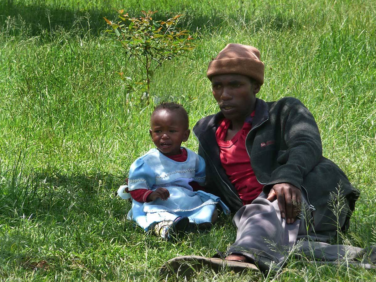 The road from Nairobi towards Nakuru. One of the largest cities in Kenya. In a place where you would not expect civilization, about 50,000 people live on a range of hills in Kasambara-Gilgil. They have practically nothing, only their lives, their families and a meager dwelling. They feed on what the soil gives them. Medical treatment is an unattainable luxury for these people as long as they depend on the government hospital. Only patients are admitted there for a fee.