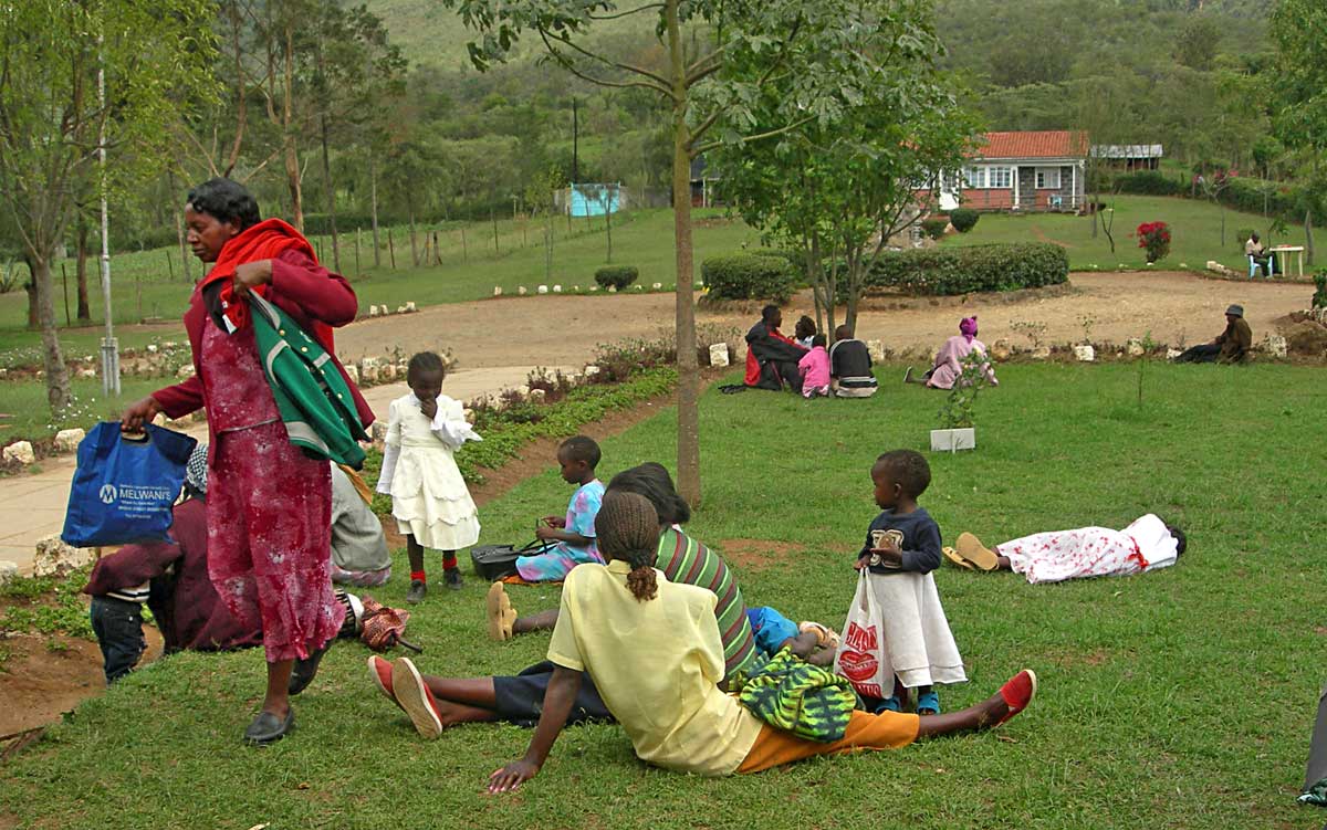 The road from Nairobi towards Nakuru. One of the largest cities in Kenya. In a place where you would not expect civilization, about 50,000 people live on a range of hills in Kasambara-Gilgil. They have practically nothing, only their lives, their families and a meager dwelling. They feed on what the soil gives them. Medical treatment is an unattainable luxury for these people as long as they depend on the government hospital. Only patients are admitted there for a fee.