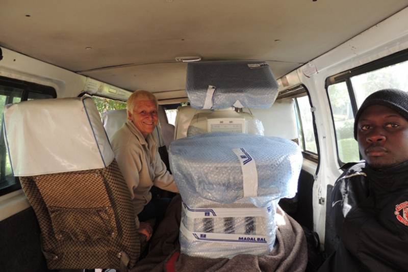Mama Matata and her team of doctors picked up the ultrasound machine for the maternity department of Rhein Valley Hospital in Mombasa. They drove 16 hours from Nakuru to Mombasa by bus and the same distance back.