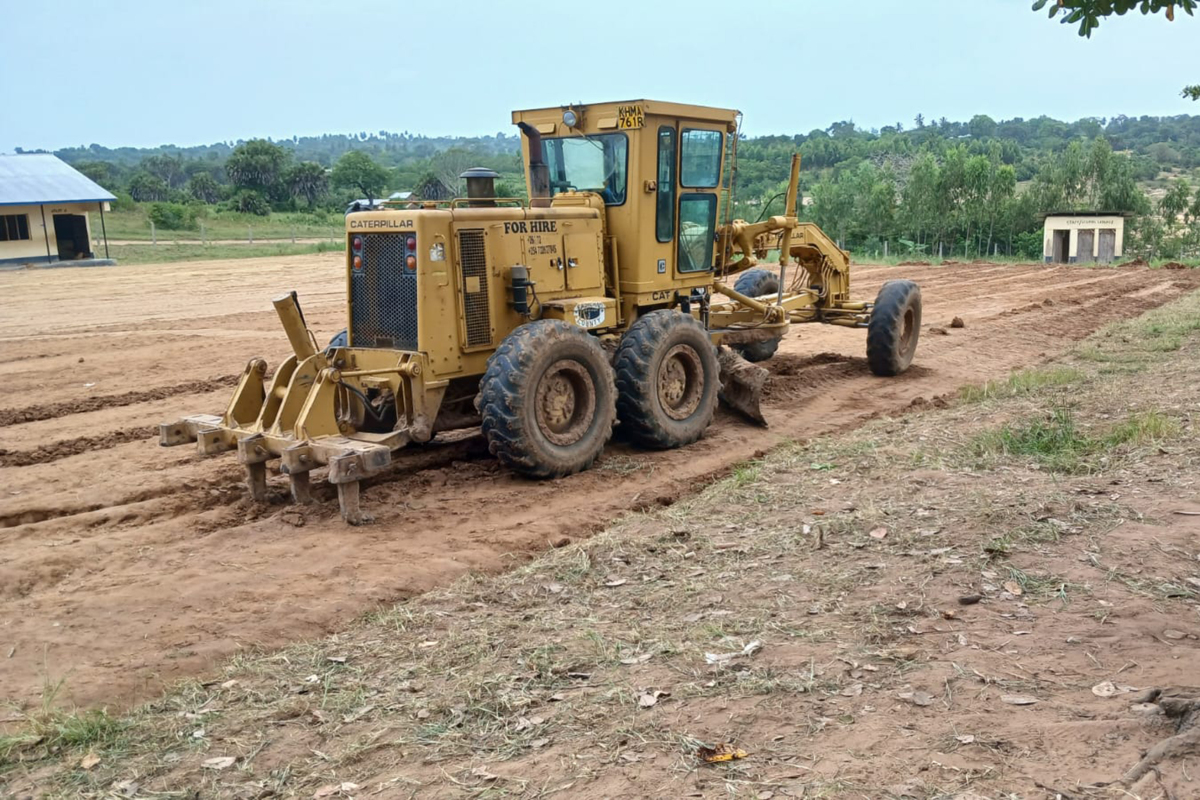 Construction of the football pitch began at a time when Shimba Hills was receiving more than its fair share of rain. When the water had drained away again after the flooding, the ground still remained muddy and slippery. The machines got stuck on the way from the valley to the school.