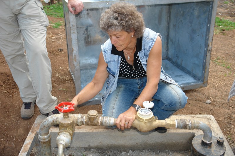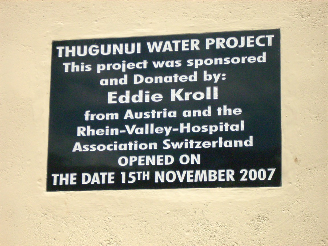 The cooperation between Rhine Valley Hospital and Shilling for Shilling made it possible for the donated funds to be used in a targeted and efficient manner. Under the leadership of Ruth Schäfer, the construction of the fountain went smoothly. Since the inauguration in November 2007, 25 liters per person are dispensed daily in a controlled manner.