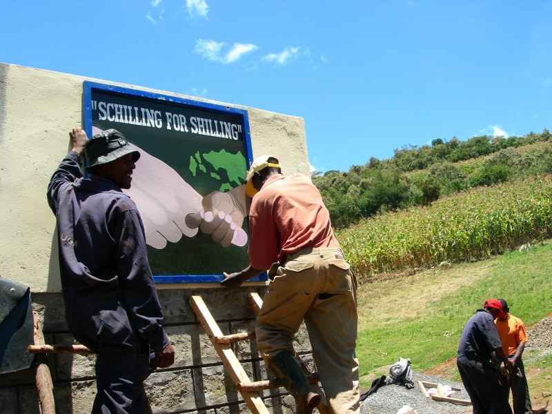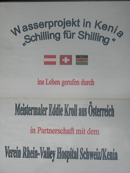 January 6, 2006 – a day that would change Eddie Kroll's life forever. That morning, the master painter, artist and writer and three of his friends narrowly escaped drowning. This dramatic boat accident and the gratitude for his rescue prompted him to build an en drinking water well with appropriate filtration systems in the bitterly poor Kasambara-Gilgil. There, people – especially women and children – had to walk up to five hours a day to get to a water point. Previously, the existing well had burst and people fetched their water from the animal trough. Chollera and Thypus spread out. They were able to get treatment at the hospital, where they were also able to get clean water.
