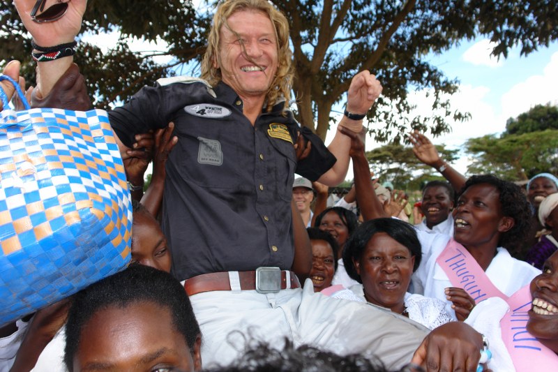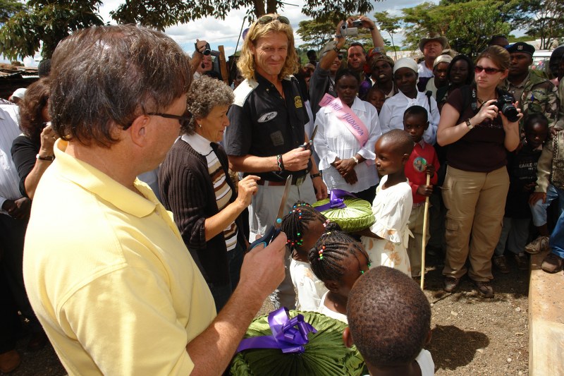 January 6, 2006 – a day that would change Eddie Kroll's life forever. That morning, the master painter, artist and writer and three of his friends narrowly escaped drowning. This dramatic boat accident and the gratitude for his rescue prompted him to build an en drinking water well with appropriate filtration systems in the bitterly poor Kasambara-Gilgil. There, people – especially women and children – had to walk up to five hours a day to get to a water point. Previously, the existing well had burst and people fetched their water from the animal trough. Chollera and Thypus spread out. They were able to get treatment at the hospital, where they were also able to get clean water.