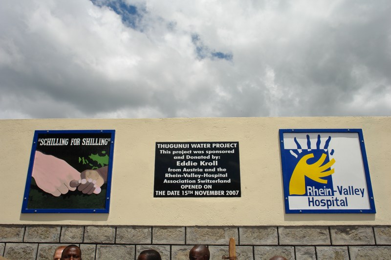 The cooperation between Rhine Valley Hospital and Shilling for Shilling made it possible for the donated funds to be used in a targeted and efficient manner. Under the leadership of Ruth Schäfer, the construction of the fountain went smoothly. Since the inauguration in November 2007, 25 liters per person are dispensed daily in a controlled manner.