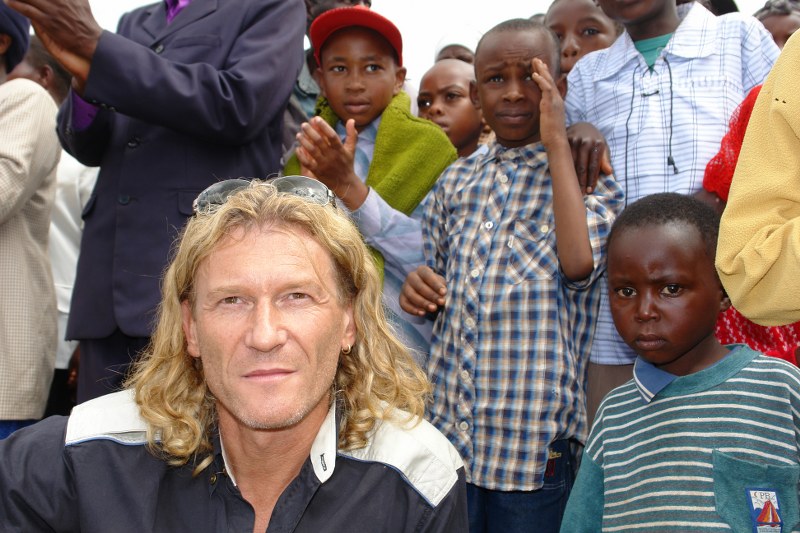 January 6, 2006 – a day that would change Eddie Kroll's life forever. That morning, the master painter, artist and writer and three of his friends narrowly escaped drowning. This dramatic boat accident and the gratitude for his rescue prompted him to build an en drinking water well with appropriate filtration systems in the bitterly poor Kasambara-Gilgil. There, people – especially women and children – had to walk up to five hours a day to get to a water point. Previously, the existing well had burst and people fetched their water from the animal trough. Chollera and Thypus spread out. They were able to get treatment at the hospital, where they were also able to get clean water.